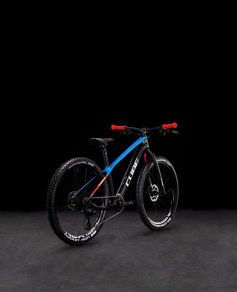 Il telaio e la forcella in carbonio sono solo l’inizio della leggerezza. CUBE ha montato i cambi Advent X 1×10 per la facilità di cambiata, l’ampia gamma e la semplice affidabilità. È presente un limitatore della serie sterzo per evitare danni al tubo superiore in caso di caduta. L’asse passante 12×100 all’anteriore e il manubrio, le manopole e le leve dei freni a misura di bambino, con dischi idraulici, assicurano un controllo sempre preciso. E piccoli accorgimenti come le leggerissime camere d’aria Schwalbe Aerothan e le ruote Newmen sono proprio il tipo di dettagli che ci si aspetta da un purosangue.