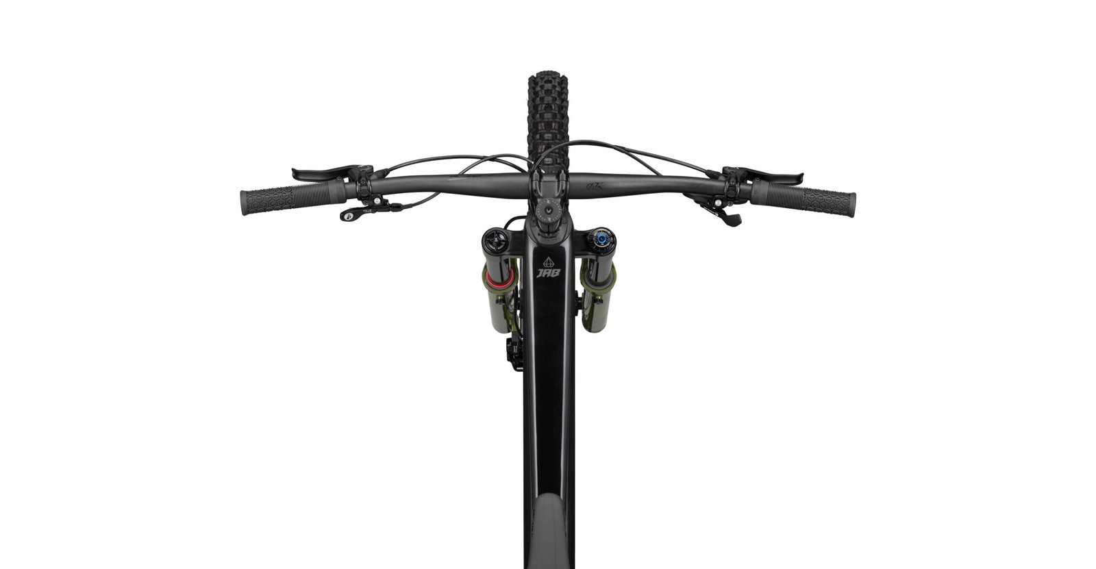 When developing the new JAB MX, the main focus was on adapting the geometry. Increased reach, longer wheelbase and a slacker steering angle (which can be adjusted via an angled headset). Suspension travel up to 170 mm, luggage compartment in the down tube and a completely redesigned full carbon frame in a mullet setup – the JAB MX shuffles the cards!