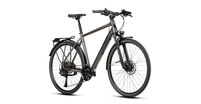 For the 2×11 drivetrain, we rely on the brand new Shimano CUES groupset, which guarantees fast gear changes, first-class workmanship and an extremely long service life. Thanks to the wide gear range, you will always have the right gear available. The hydraulic Shimano BR-MT200 brakes ensure reliable deceleration, especially on descents at top speed. The floating luggage rack is prepared for carrying panniers and combined with elegant mudguards, making it another visual and functional highlight. For an elegant finish, we rely on a high-quality Busch & Müller lighting system with the Lumotec IQ-XS Light N plus at the front and the Toplight 2C at the rear – naturally powered by a hub dynamo. In terms of comfort, the model offers the comfortable Natural Fit Sequence saddle on a suspended Satori Harmony-LT2 seat post – a combination that is particularly impressive on long tours. The journey can begin with the SOLUTION COMFORT 9.0 – a bike that meets the highest demands!