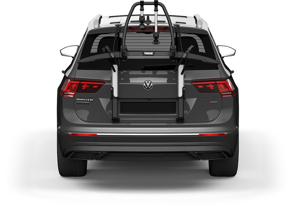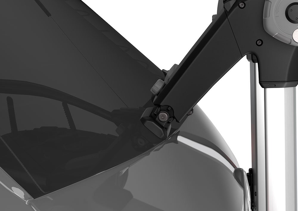 - Montaggio semplice delle bici mediante i bracci regolabili/amovibili e i pomelli del limitatore di coppia Thule AcuTight che scattano in posizione quando viene raggiunta la coppia di serraggio ottimale